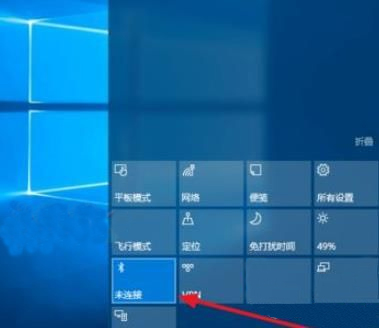 6、再回到Windows10任务栏右下角操作中心中就可以找到蓝牙开关按钮了。